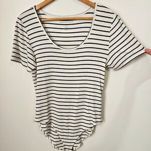 EUC AMERICAN EAGLE OUTFITTERS SCOOP NECK RIBBED STRIPED BODYSUIT SIZE LARGE