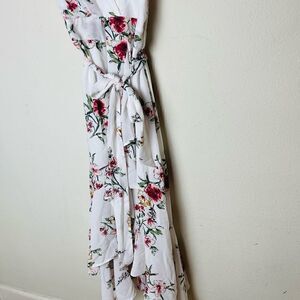 Excellent Used Condition ANGL Purple Snow White Floral High Low Maxi Dress Small F1
