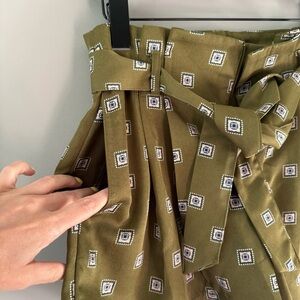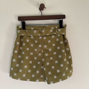 ANN TAYLOR FACTORY OLIVE GREEN PRINT BELTED SHORTS SIZE 2