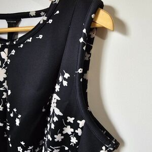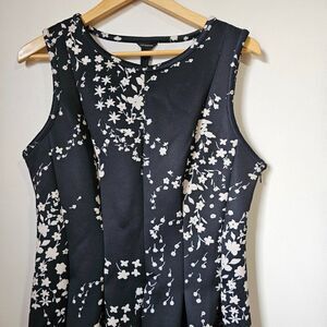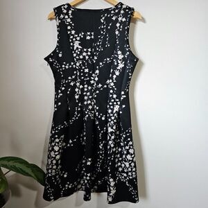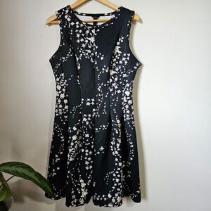 EUC ANN TAYLOR FLORAL SKATER DRESS BLACK / WHITE SIZE 12
