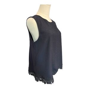 ✨ EUC ANN TAYLOR Navy Sleeveless Shell with Floral Appliqué Hem | Women’s Sz M