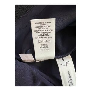 Elegant and feminine, this ANN TAYLOR navy sleeveless shell features a beautiful floral appliqué detail at the hem. Designed with a zipper and hook-and-eye closure at the back, the top combines two contrasting fabrics for added dimension. Delicate pin tucks in the back create a soft, flattering drape. Perfect for work, dinner, or special occasions.