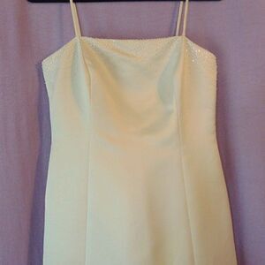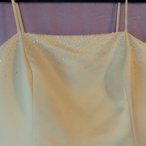 EUC ANN TAYLOR Ivory Spaghetti Strap Floor Length Beaded Bridal Prom Gown 4