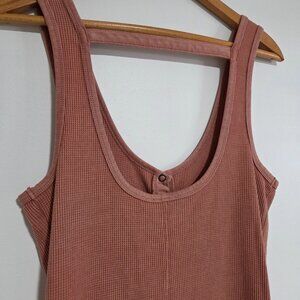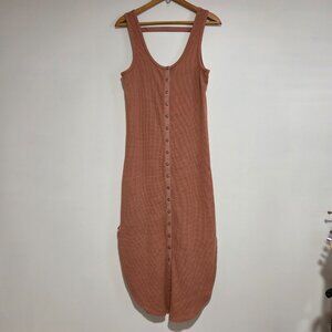 EUC ANTHROPOLOGIE DAILY PRACTICE WAFFLE KNIT SCOOP NECK BUTTON DOWN TAN DRESS M
