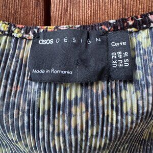 EUC ASOS Curve Midi Plisse V-Neck Long Sleeve Floral Print Dress in Women's 16