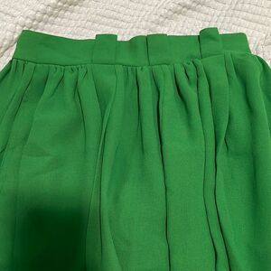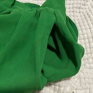 Green, top ruffle/pleat design, back zipper, pockets, unlined, missing material tag. Semi sheer