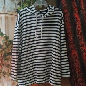 EUC: AVA & VIV Sze. 3X Black & White Striped Hooded Terry Cloth Tunic Top