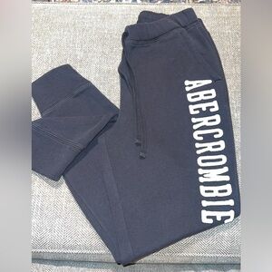 Comfortable navy sweatpants with Abercrombie logo in white.