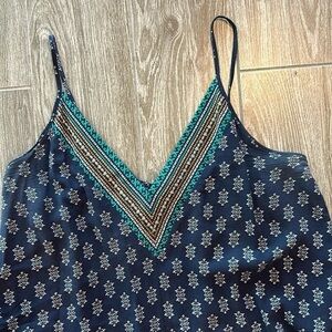 EUC no damage, stains, or odor. Smoke free home! Adjustable spaghetti straps, flattering v neck, wide leg pants. Great length for petites. I’m 5’2 and could wear with flats. May be cropped length if you are taller.