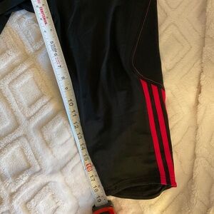 Hardly worn pair of Adidas Clima Lite capris. These are in a cute black and hot pink design, with a zipper pocket on the back, and the Adidas stripes along the calf.