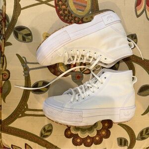 Worn twice. Classic Adidas Nizza sneakers in white.