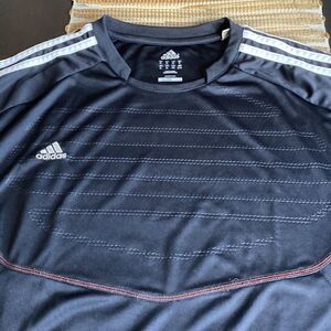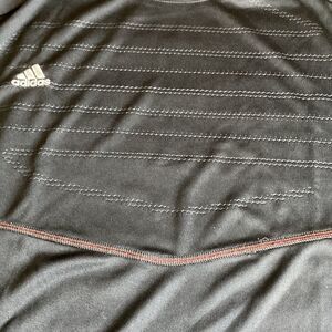 Blk with 3 stripes running from neck to end of sleeve on both sides S/S
