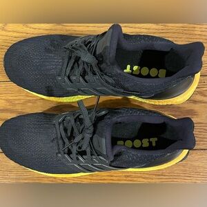 EUC Adidas men’s Ultra Boost Rainbow Pack Yellow Sole w/black sneakers, size 11