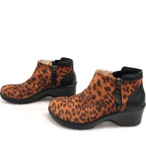 EUC Alegria "SLOAN" Leopard Print Ankle Boot "Booties" Sz 6.5 Brown & Black