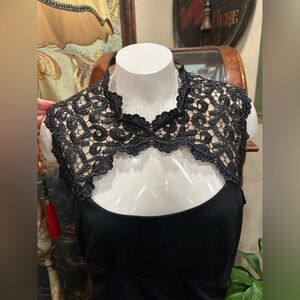 EUC Alex Evenings Black Sleeveless Lace Draped Slit Long Gown Maxi Dress