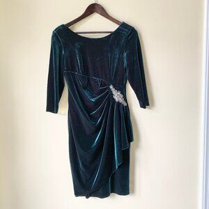 EUC Alex Evenings Jewel Neck Knee Length Velvet Cocktail Dress, Green, 4 Petite