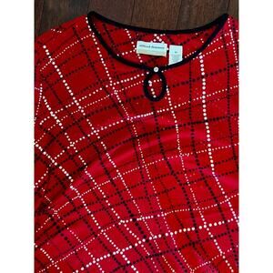 This Alfred Dunner blouse is in excellent used condition and features a striking red and black plaid pattern. Perfect for adding a pop of color and classic style to your wardrobe. This plus size 2X blouse offers a comfortable and flattering fit. Great for both casual and dressier occasions. Don't miss out on this stylish and versatile piece!