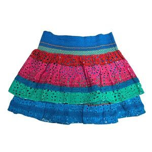 EUC Alice + Olivia Women's Multicolor Striped Mini Skirt Blue Size 12