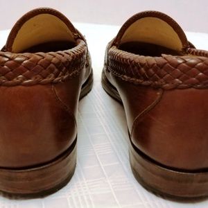 Excellent Pre-Owned Condition.Size 9C (medium narrow width) Beautiful Allen Edmonds Maxfield Moccasin. Brown with beautiful Brocade trim and Tassels. The Leather is excellent as is the lining and sole there is some slight discoloring on the inside from socks?. The half soles have been re-done on these shoes. There is slight wear at the rear of the heel rubber. These are 8/10 on our Allen Edmonds.