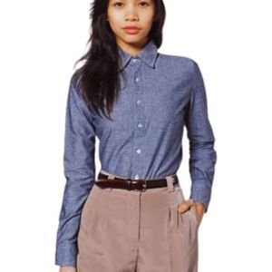 Excellent Used Condition, EUC American Apparel Unisex Long Sleeve Button Down RSACP400SA Blue Chambray Shirt.