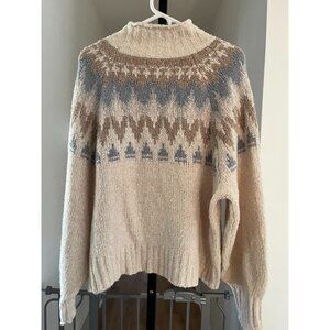 EUC American Eagle Womens XL Fair Isle Sweater Beige/Blue Acrylic/Cotton Blend W