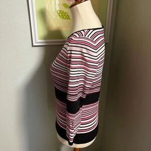 EUC Anne Klein Pullover 3/4 Sleeves, Pink & Blue Stripes # 42