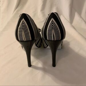 EUC Anne Michelle Striped Peep-toe ‘Flare’ Heels with Bow Detail