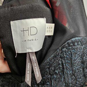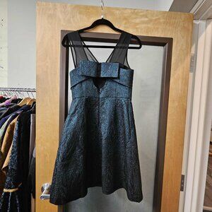 Excellent, Like New Condition! Emerald Facet Flared HD in Paris Dress in Women's Size 4 - Gorgeous cocktail dress by HD in Paris for Anthropologie. Features sleeveless fit and flare silhouette, illusion neckline, bow back with keyhole, and metalllic emerald fabric.