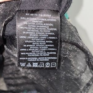 Cotton, polyester, rayon, spandex