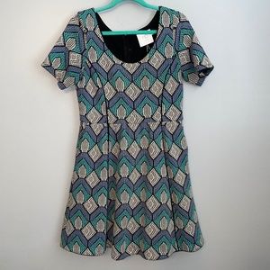 EUC Anthropologie HD in Paris Hollyhock Fit & Flare Swing Dress Size Medium