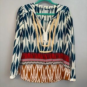 EUC Anthropologie Maeve Rohana Embellished Henley Sheer Blouse Size 4