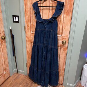 EUC Anthropologie Pilcro Navy Denim sweetheart neckline layered Maxi Dress XL