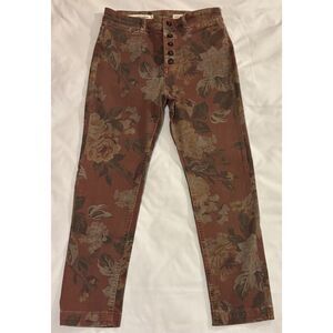 EUC Anthropologie Pilcro Ultra High-Rise Slim Straight Floral Jeans, Sz 28