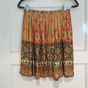 Never worn, very fun free spirit, boho style skirt with on-seam POCKETS! Excellent preowned condition - may have missing beads, but nothing noticed. A few errant threads could easily be trimmed (see CU photo). Multi-color with intricate pattern & beading. Intentional fading in parts of the pattern add to bohemian style.