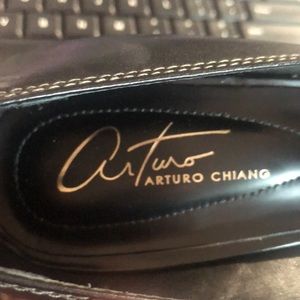 EUC Arturo Chiange Size 7.5M Black 2.5" Peep Toe All Leather Heel