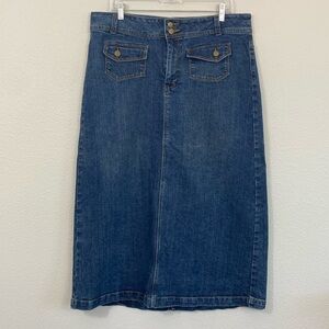 EUC Ashley Stewart Western Embroidery Denim Maxi Skirt size 14