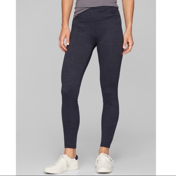EUC Athleta Metro High Waist Heathered Navy Herringbone Leggings size XS