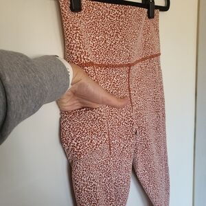 EUC Athleta Salutation Stash II Textured Tight Micro Leopard Rust Orange Small