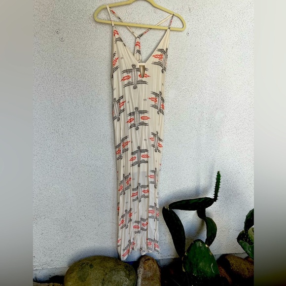 EUC Audrey 3+1 Size M Aztec Maxi Dress Flowy Pink/Gray/Cream