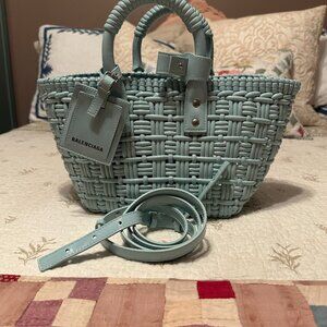 EUC Authentic Balenciaga Bistro Basket Bag XS Green Acqua with Strap
