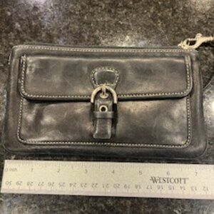 EUC Authentic Coach Black Leather Wristlet with Buckle Pocket