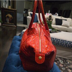 EUC Authentic Rare MCM Satchel. Croco Embossed patent leather in rich orange. Color is stunning. Hardware in beautiful condition - zipper pulls are orange and gold.