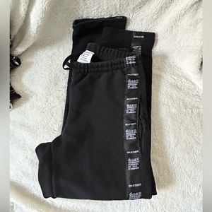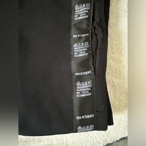 Authentic Vetements cropped sweatpants. Zero flaws or wear. Black with “100% Vetements” down the legs as well as garment wash instructions (True to Vetements form). Typical sweatpants fit, but a little more snug. Heavy comfortable material. I just don’t ever wear them, never have. Hopefully someone else can enjoy them instead! Thanks for looking!