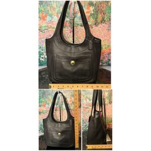 Excellent vintage condition authentic Coach Legacy Ergo 11615 in black pebbled leather. This bag is elegant yet simple in design. It is perfect for daily use - holds all the essentials and then some. Fits very nicely and comfortably on the shoulder. I don’t see any exterior issues. The corners and bottom look