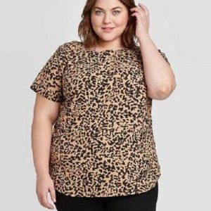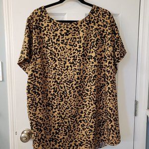 Ava & Viv leopard print blouse, size 3X. Back is closed with functional buttons, covered in same fabric. Drop shoulder style. Lightweight, very comfortable.