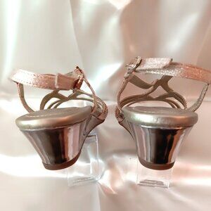 EUC💥 These adorable Bandolino wedge heel sandals are delightful, stylish and so comfortable. They are in excellent used condition; only worn once!  The color is like a gorgeous rose gold with the straps covered in tiny rose gold crystals.  These Bandolino sling back shoes offer both comfort, elegance and are perfect for any occasion.