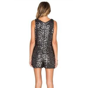EUC BB Dakota Callan Full Sequin Romper Shorts Pewter Silver Zip Pockets Size 2