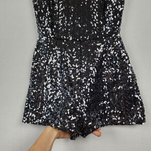 Excellent used condition, little to no signs of wear! High quality full sequin romper with soft polyester lining and POCKETS. Photos do not do it justice, this piece is fabulous.