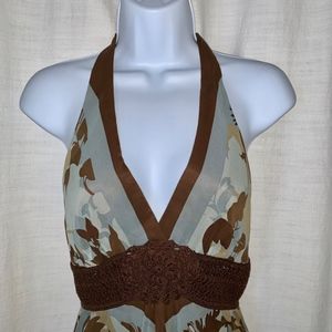 Beautiful BCBGMaxazria 100% Silk Crochet Handkerchief Hem Halter Dress!