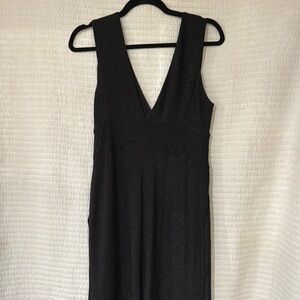 ! EUC BCBGeneration Black Glitter V-Neck Sheath Jumpsuit Sz Medium!